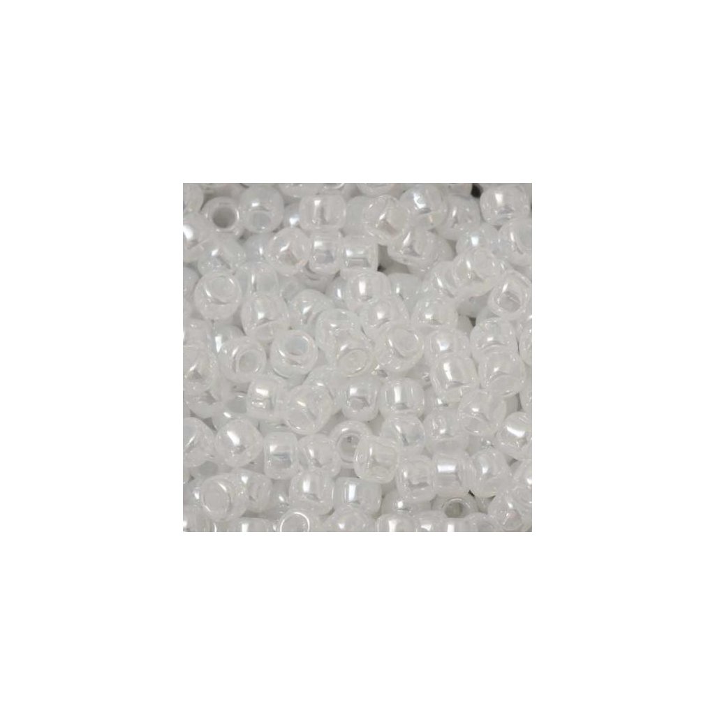 TOHO Round o rozměru 8/0 (3,1mm) a barevném provedení Ceylon Snowflake. Dokonale tvarově pravidelný japonský rokajl od firmy TOHO Co., Ltd. Díky většímu průměru průtahu je vhodný na obšívání a vyšívání.
