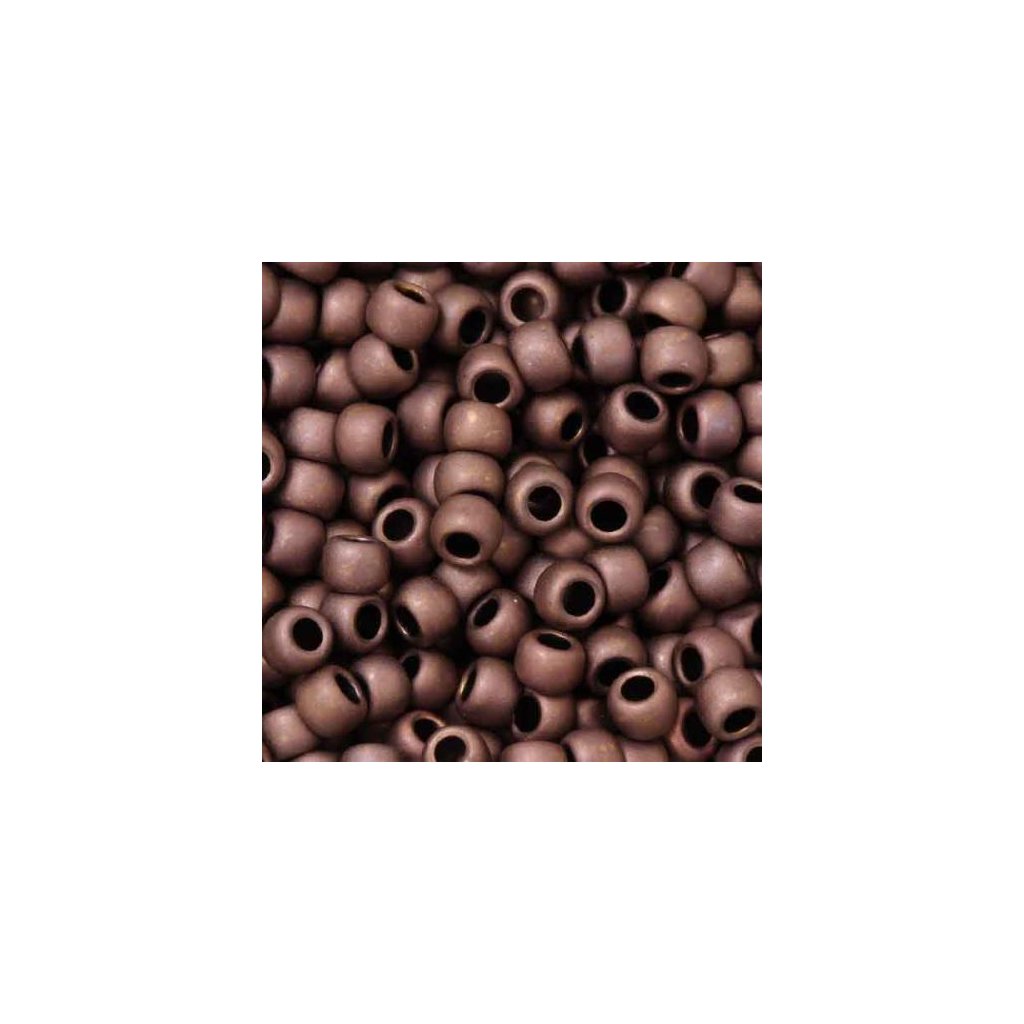 TOHO Round o rozměru 8/0 (3,1mm) a barevném provedení Frosted Dk Bronze. Dokonale tvarově pravidelný japonský rokajl od firmy TOHO Co., Ltd. Díky většímu průměru průtahu je vhodný na obšívání a vyšívání.