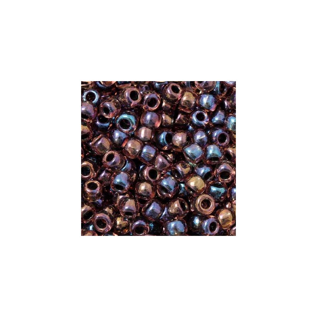 TOHO Round o rozměru 8/0 (3,1mm) a barevném provedení Luster Lt Amethyst/Jet Lined. Dokonale tvarově pravidelný japonský rokajl od firmy TOHO Co., Ltd. Díky většímu průměru průtahu je vhodný na obšívání a vyšívání.