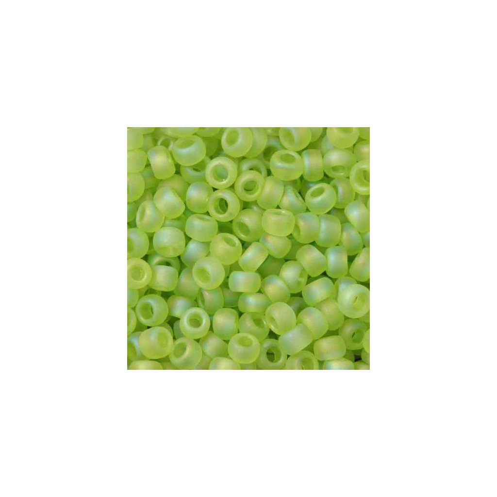 TOHO Round o rozměru 8/0 (3,1mm) a barevném provedení Rainbow Frosted Lime Green. Dokonale tvarově pravidelný japonský rokajl od firmy TOHO Co., Ltd. Díky většímu průměru průtahu je vhodný na obšívání a vyšívání.