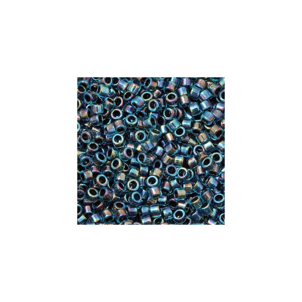 TOHO Treasure o rozměru 11/0 (1,8mm) a barevném provedení Aqua/Jet Lined. Dokonale tvarově pravidelný japonský rokajl od firmy TOHO Co., Ltd. Díky většímu průměru průtahu je vhodný na obšívání a vyšívání.